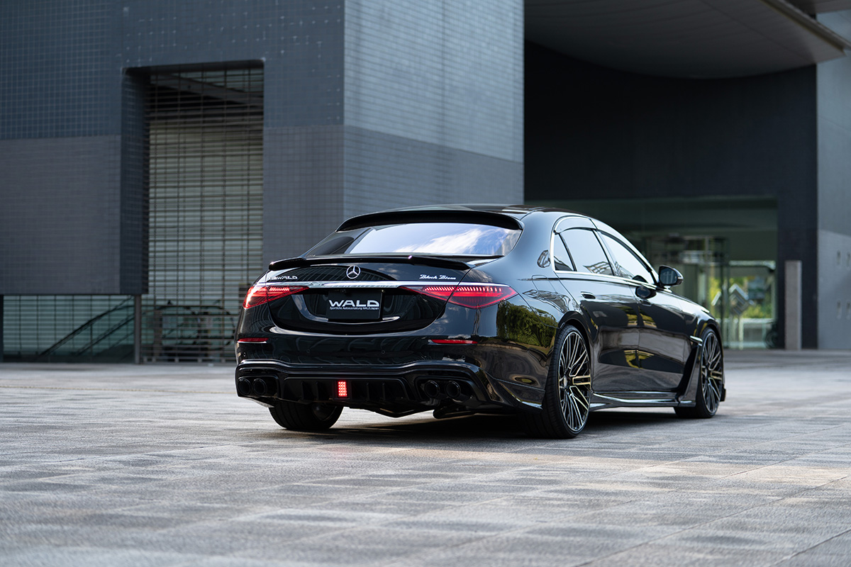 Strong Impact for Front Face and Sporty Atmosphere for the Rear End. WALD developed the Front Spoiler with the latest elements of SPORTS LINE Black Bison Edition for W223 S-Class. The Add-On Type Exterior Package withdraws the elegant and innovative impression with the original glamorous body line.